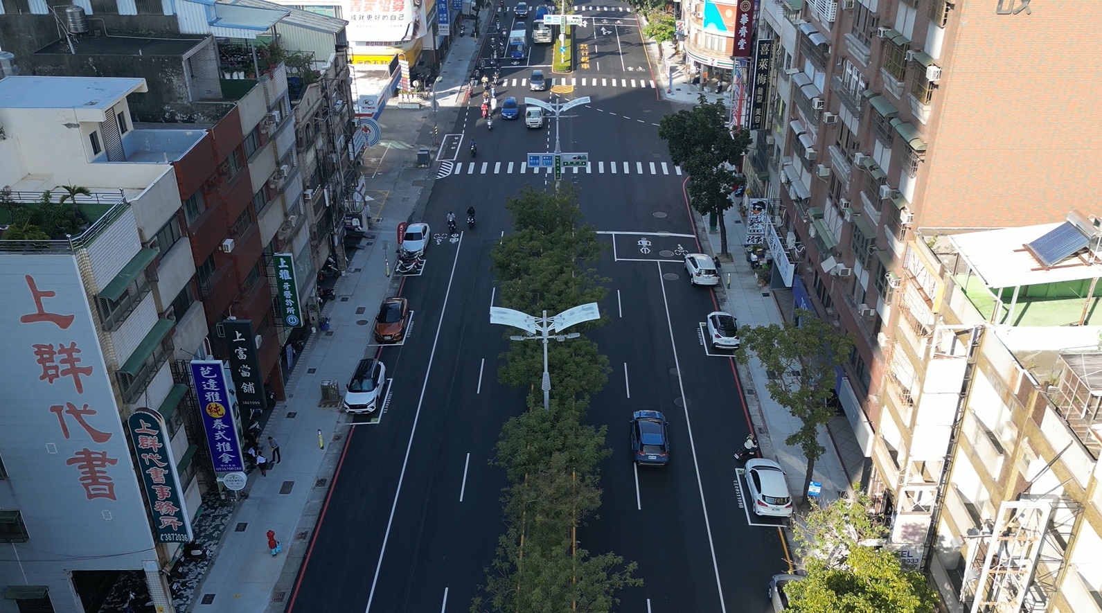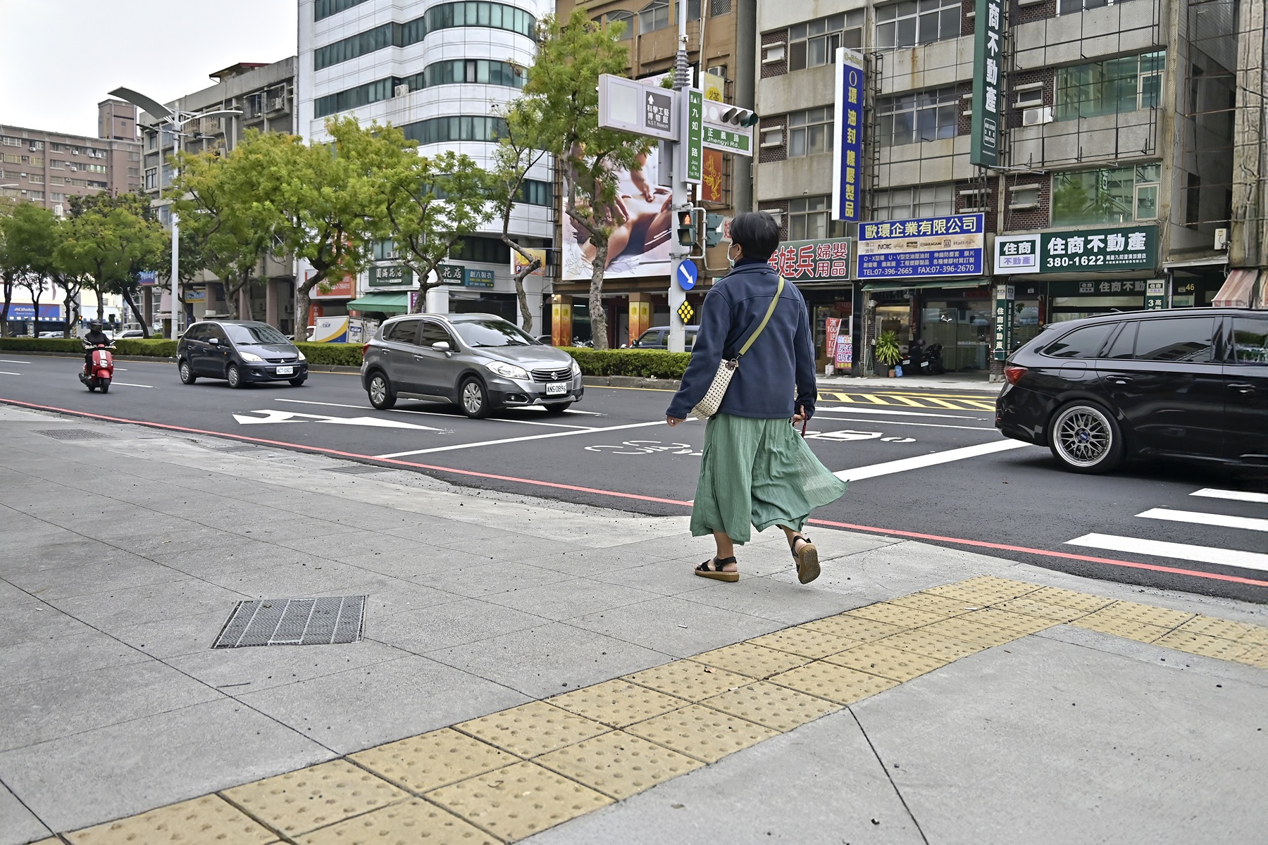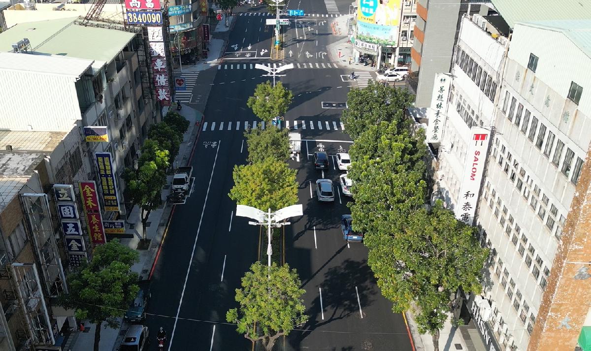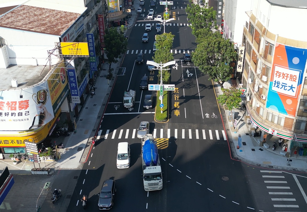 道工處說明,九如一路為本市交通樞紐,且未來捷運黃線將經過與之交會的澄清路段,也再帶動周邊地段人車流量增長,因此選用平順、耐久、美觀的優質材料換新過去老舊不平的連鎖磚鋪面、改善無障礙斜坡設計,並依地區用路性質以再生瀝青混凝土翻新路面,提升路面平整度同時減少碳足跡,亦配合交通局建議調整相關標線配置,增進整體交通安全。
