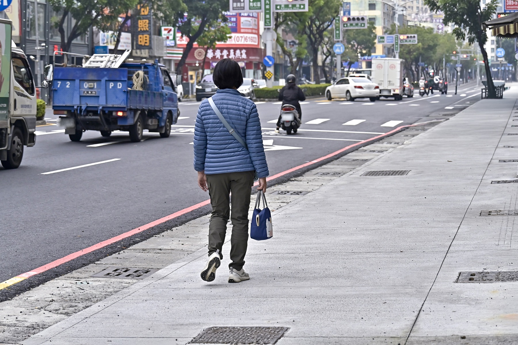 三民區九如路是高雄市東西向幹道,可串聯國道1號、省道台1線、捷運、輕軌、台鐵車站等重要交通節點。工務局道工處今(11)日指出,為提升人行及車行環境品質,近期針對鄰近陽明學區商圈、正義車站的九如一路人行道及路面翻新完成,提供更舒適優質的公共空間。