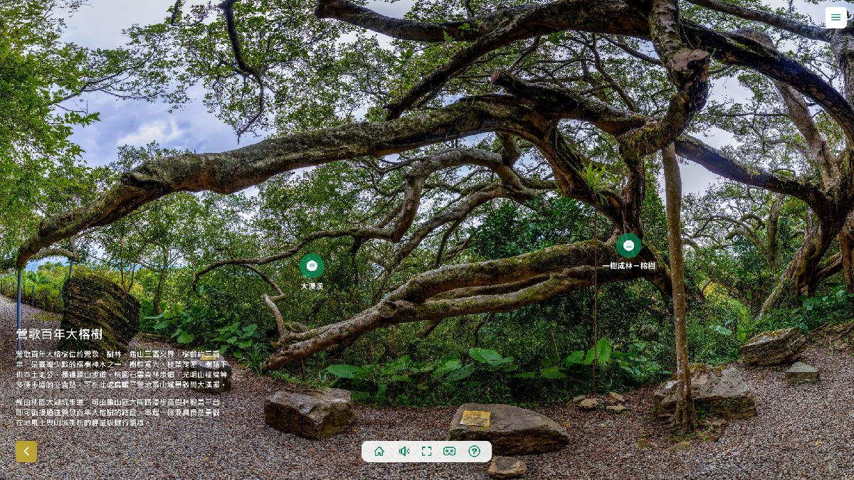 系統特別採用超高解析全景並結合數位孿生技術,使用者能自由切換視角,細緻觀察武器公園的歷史遺跡、雷達站的開闊視野,以及百年大榕樹的蒼勁姿態。配合在地生態解說及步道文化介紹,搭配環境音效與AI語音導覽,打造沉浸式的數位體驗,讓民眾在家也能預先規劃行程,實際走訪時更能深度體驗。