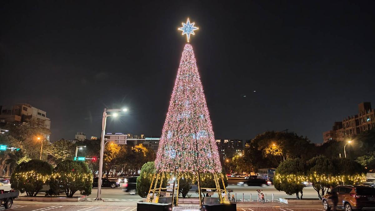 今年活動打造一座高達13.5公尺的聖誕樹,樹體結構象徵希望與愛持續向上伸展。與往年不同的是,今年以「穿越空間」設計,樹體下方預留足夠空間,讓民眾可以直接走進聖誕樹內部。內部空間利用紅、白色燈飾進行高低層次搭配,營造出夢幻光影,讓每一位進入的民眾都能感受到被愛與祝福的氛圍,成為今年聖誕節必拍的網美打卡點。