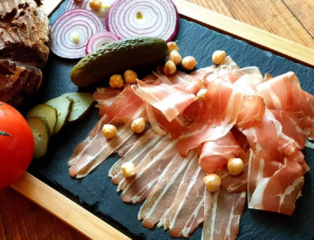 《瑞士小屋 Alphütte》於 2020 年成立,初期為一座手工肉品工坊,專精於製作正宗歐洲香腸、火腿與培根等產品,強調天然製程,不含人工香料,並用天然櫸木煙,不用化工煙燻液,確保風味純粹與食品安全,堅持每一道程序,光培根製程就需要十道工序。他說:「我們希望呈現的是正宗歐式傳統美食,而不是科技速成的版本。」