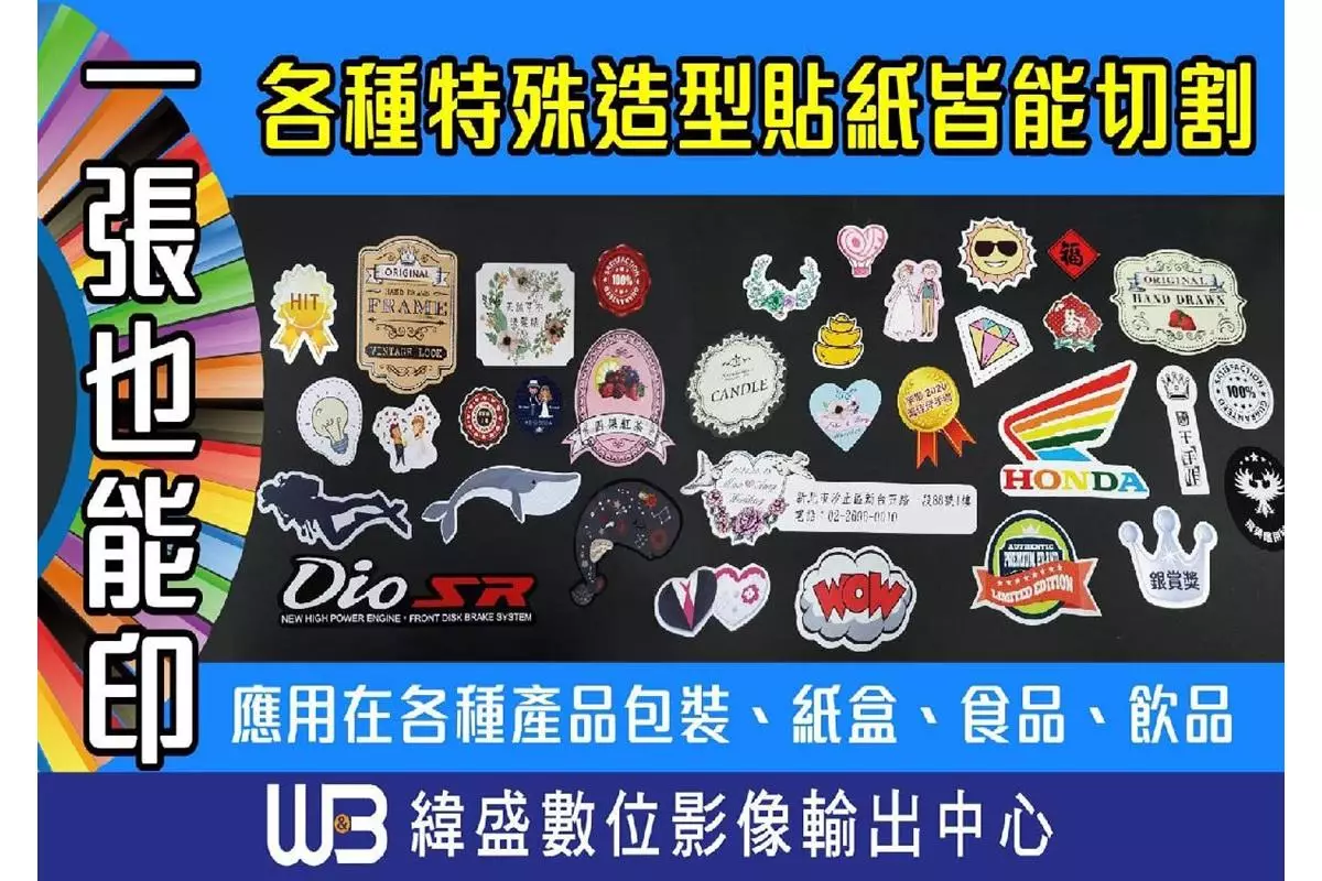 【緯盛影像輸出中心】始終秉持著「專業與品質」的核心價值,為每一位客戶提供全面的印刷服務。我們的貼紙印刷和水晶貼紙服務深受好評,從各種材質的貼紙如銅版貼紙、透明貼紙、赤牛皮貼紙、模造貼紙、珠光合成貼紙、防水貼紙、雷射貼紙、亮金銀龍貼紙、反金銀龍貼紙、金箔貼紙、銀箔貼紙、PVC貼紙、條碼貼紙、特殊形狀貼紙刀模繪製與軋型,到精美的水晶貼紙等…