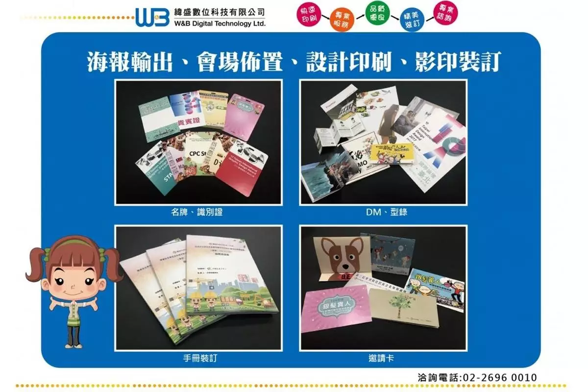 在緯盛影像輸出中心,我們提供一站式整合服務,無論是影印、印刷、裝訂還是設計,我們都能以最快速、最便利的方式完成。並且我們也在蝦皮提供線上服務,蝦皮賣場搜尋【WB貼紙印製所】。從文件講義到大型海報、DM設計,我們的一條龍服務讓您節省時間和成本。【緯盛影像輸出中心】致力於成為客戶信賴的長期合作夥伴,無論您在汐止、新北、台北、基隆,我們都將竭誠為您提供最優質的印務服務!