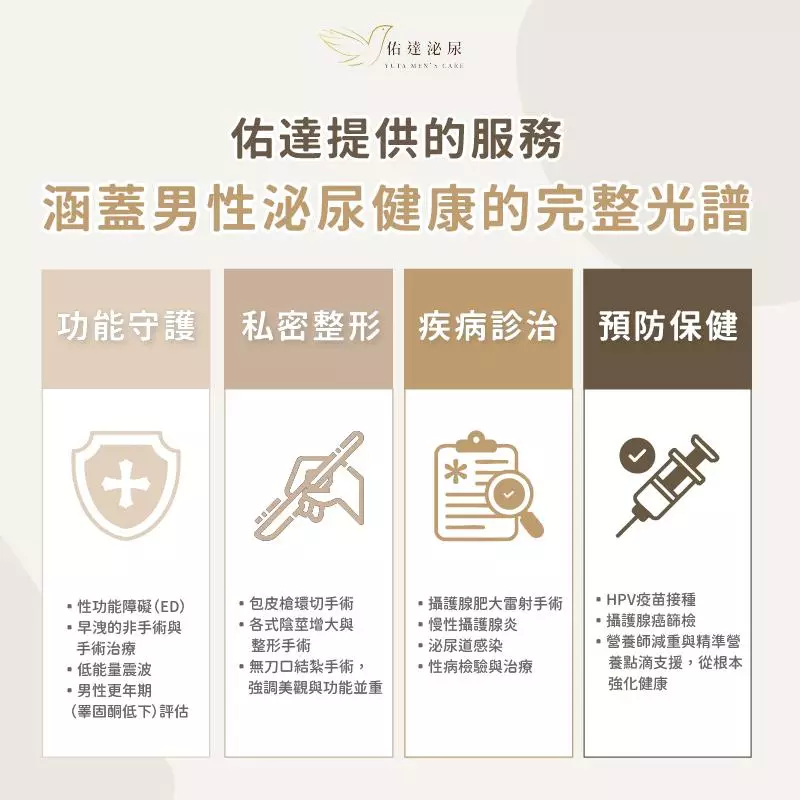 佑達提供的服務,涵蓋男性泌尿健康的完整光譜: