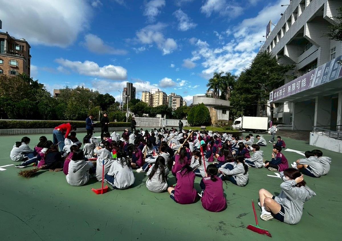 活動當日在各班導師協助下,學生分組前往指定區域,進行落葉清掃、垃圾撿拾、綠地維護與公共設施整理。菊展期間湧入的大量遊客使福林公園與鄰近停車場垃圾量明顯增加,學生們都能「彎下腰,展微笑」投入清潔活動,協助通學必經路段與觀展動線恢復整潔。師長也在過程中引導學生觀察大型活動對城市環境造成的負荷,進一步思考自身在公共空間中的責任,許多學生表示,看著自己整理過的區域瞬間變得乾淨,是最直接且富成就感的真實學習體驗。