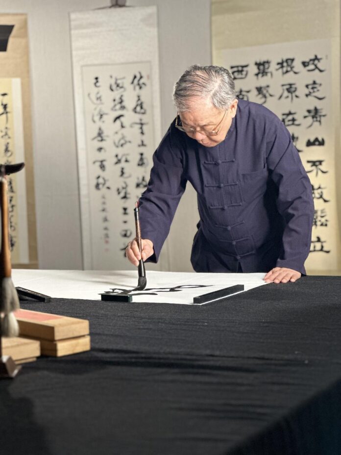 近年,張炳煌更結合 AI 與數位轉型,推動「e筆 AB 雙軌轉型研發計畫」,打造「書作玉成」、「空靈揮毫」、「美跡系統」等具演算能力的科技書法平台,為書法的未來發展奠下新基礎。張炳煌教授的書風古意與現代趣味兼具,展覽除了呈現傳統書法作品,也有與科技結合的創作,並讓民眾體驗 e筆系統,感受書法在數位時代的新風貌。