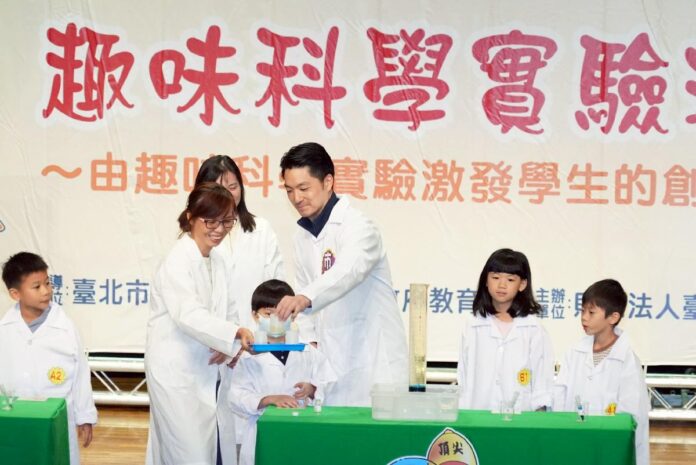 臺北市長蔣萬安今(14)日出席「第11屆公益性趣味科學實驗演示會」開幕活動,除在致詞時鼓勵孩子從生活中學習,並在會中穿上實驗衣,與現場學童分組一起參與科學體驗。
