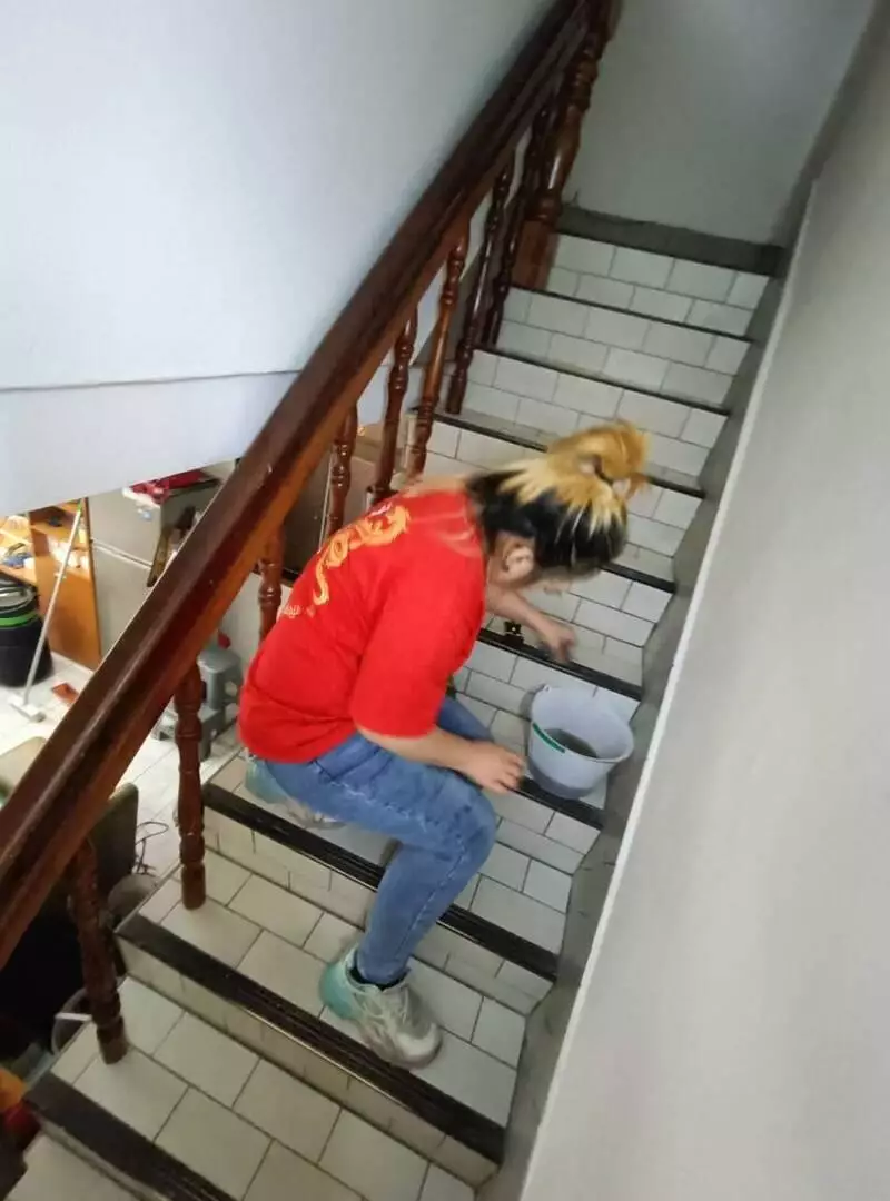 黛琳團隊成員身穿統一制服,使用伸縮除塵工具清理天花板、深度處理廚房油污及浴室頑垢等,展現其專業分工。公司強調,團隊成員多為年輕專業人員,設備每年更新並持續導入新工具,且定期安排員工參與課程、實務訓練與專業證照考取,以確保服務水準持續提升。