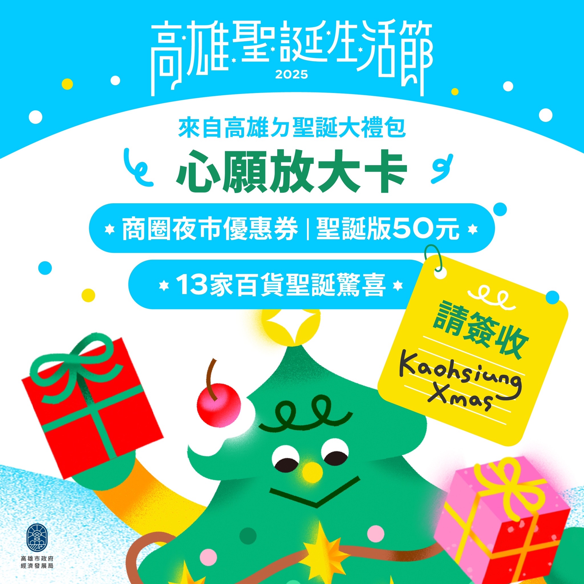 南部新聞高雄市高雄13家百貨送聖誕禮! 高雄聖誕生活節推出「心願放大卡」雙重回饋50元商圈夜市券及全市百貨聖誕驚喜
