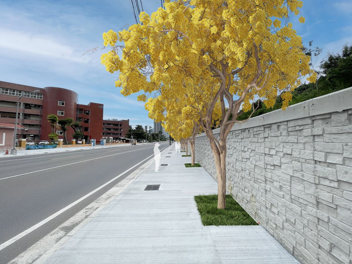 施工期間,水利局並同步發現鼓山三路224巷至桃子園路段人行道多處地磚老舊下陷,影響行人安全,為避免二次施工,再爭取市府經費將人行道改善工程納入一併辦理。該段人行道全長約620公尺、寬約3公尺,採PC刷毛鋪面並增植喬木,兼顧人行安全與環境美化。