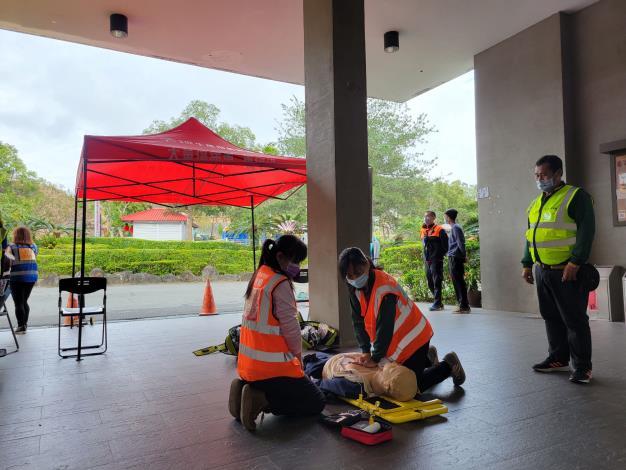 為迎接春節旅遊及疫後觀光熱潮,臺東縣政府特別在臺東原生應用植物園,舉辦觀光遊樂業緊急救災救護演習,模擬演練當園區發生大規模民眾食物中毒、燒燙傷、休克等多元緊急意外情境,萬一意外突然發生,確保觀光遊樂業人員有能力立即應變、進行救護,爭取救護車抵達前黃金救援時間,期保障遊客生命安全。