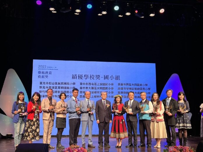 【臺北報導】教育部114年第12屆藝術教育貢獻獎頒獎典禮於114年12月16日(星期二)假國立臺灣藝術教育館「南海劇場」舉行,獎項包括團體項目「績優團體獎」、「績優學校獎」,以及個人獎項「終身成就獎」、「教學傑出獎」與「活動奉獻獎」。今年臺北市表現卓越,共有松山區民族國小、中正國中、私立靜心高中與采苑藝術文教基金會脫穎而出,從績優學校國小組、國中組、高中組到績優團體獎均名列其中,為全國唯一在所有團體獎項類別皆有獲獎代表的城市,充分展現臺北市長期推動藝術教育的深厚能量與成果。