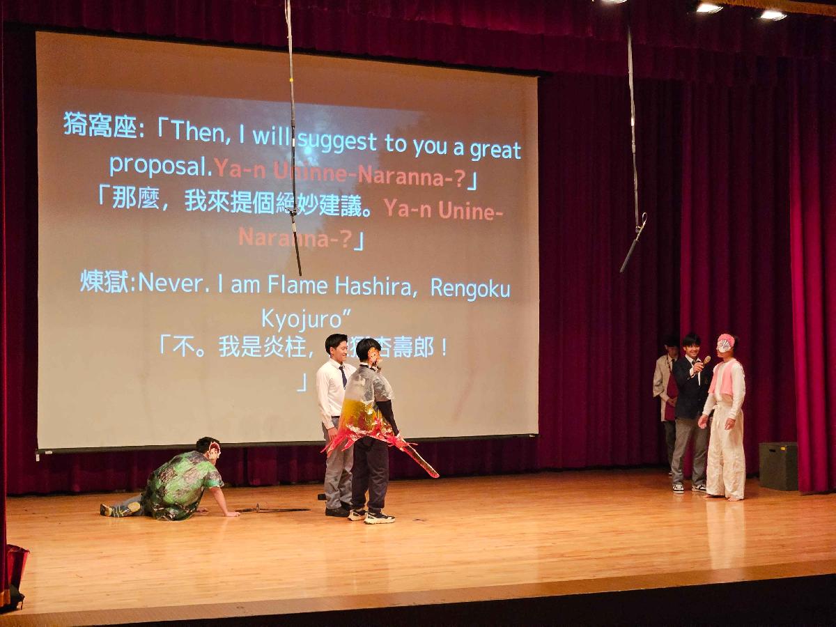 下午的文化交流活動於音樂廳熱鬧展開。沖繩興南高校師生首先帶來充滿地方特色的沖繩飲食文化介紹、傳統歌舞與拔河體驗,並以戲劇形式呈現融合流行文化的《鬼滅之刃》舞臺演出,展現日本學生的創意與表演能量。成淵高中則由社聯會、成淵之星舞蹈組優勝團隊、創漫社、手語社與流音社輪番登臺,透過舞蹈、音樂與肢體藝術,呈現社團長期薰陶的學習成果,現場掌聲不斷,交流氣氛熱烈而感動。