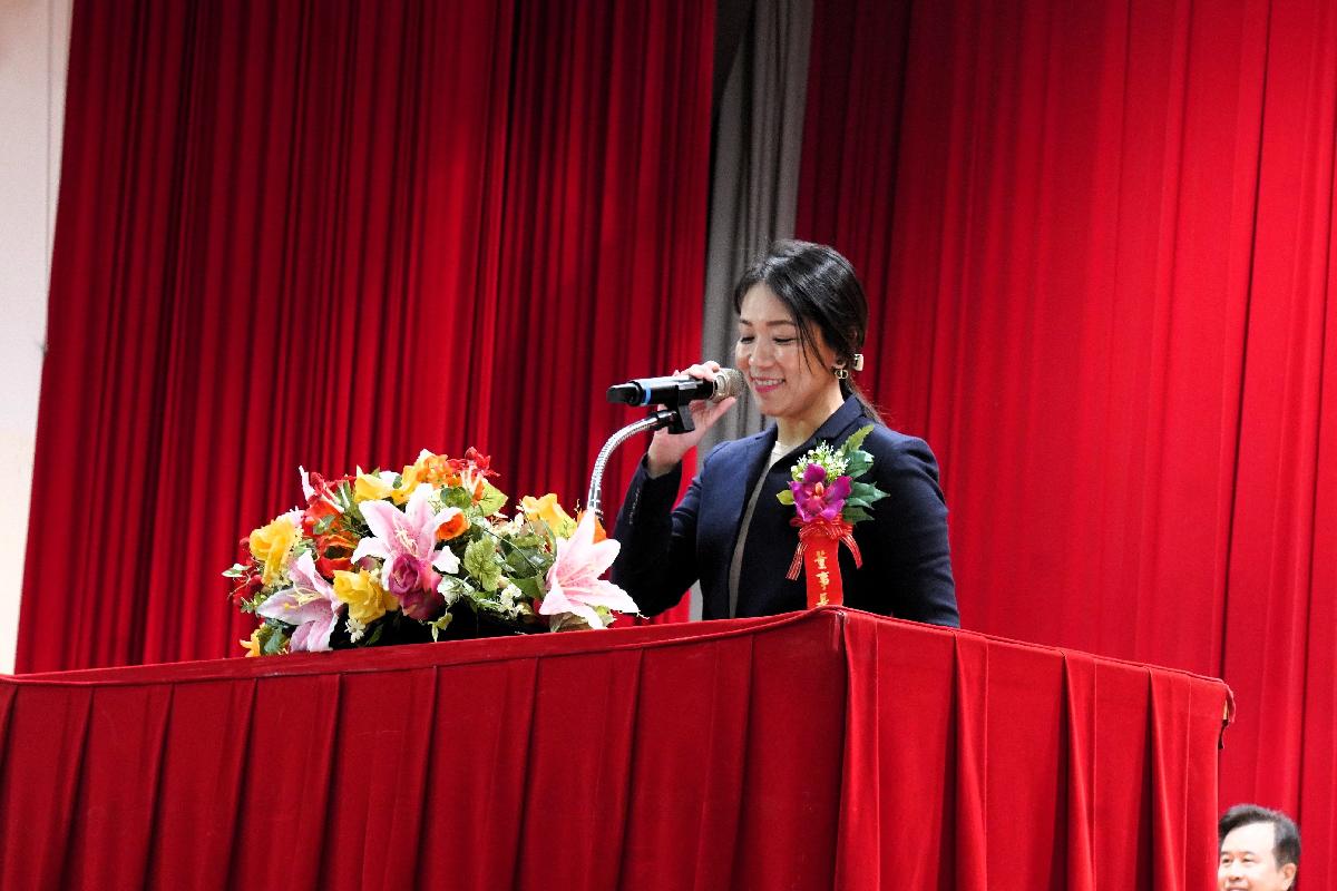 董事長侯芯巧在致詞中回顧學校創立至今的使命與願景。他表示,育達能走過 76 個年頭,靠的並非僅是制度,而是創辦人王廣亞博士留下的教育精神,相信每一位孩子都擁有屬於自己的能力與未來,而教育的本質不只是灌輸知識,更是引導學生培養品格、建立自信,並具備改變人生的力量。他特別感謝所有教職員工多年來的專業投入,也高度肯定學生在技能賽事、成果展演與專業學習中的亮眼成績,這些都是育達持續精進、穩健成長的最佳證明。面對未來,董事會將全力支持學校在技職教育、品格扎根以及國際交流上的布局,讓學生擁有更大的舞台,也更有能力迎接世界的挑戰。