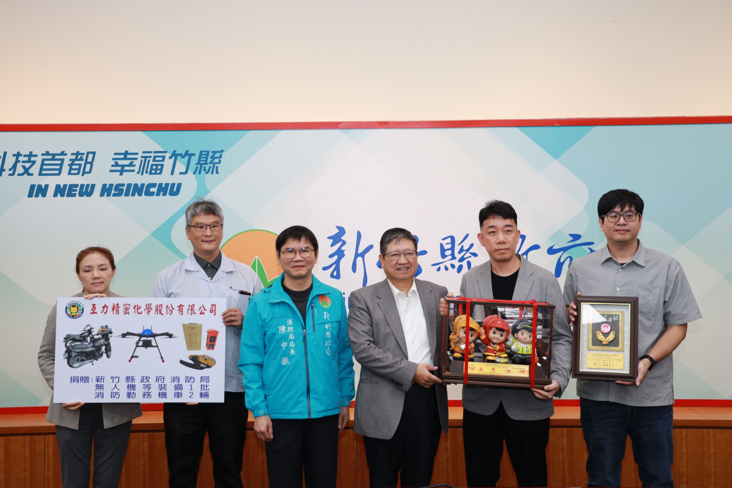 互力精密化學自民國77年在湖口鄉新竹工業區設廠至今,已深耕台灣矽類特用化學品領域37年。互力精密化學身為錸德集團的一員,始終秉持「取之於社會、用之於社會」的核心精神,楊慰芬董事長將企業盈餘投入多項公益計畫,而本次捐贈的無人機及電池、下降器、機車等救災設備予新竹縣消防局,希望透過具體行動,強化地方的救災效能與安全防護能量。