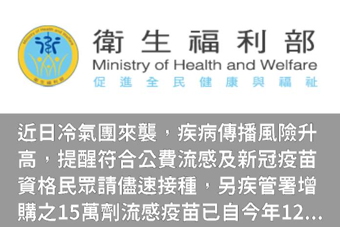 疾病管制署(下稱疾管署)今(16)日表示,截至今(114)年12月15日,公費流感疫苗接種數約648.5萬人次,新冠疫苗接種累計約154萬人次,其中Novavax JN.1疫苗接種約3萬人次。另考量今年度公費流感疫苗接種情形踴躍,為進一步提升65歲以上長者及學齡前幼兒等高風險族群接種率,降低重症與死亡風險,疾管署已再增購15萬劑公費流感疫苗,自今年12月15日起陸續配送,預計於本週完成配送。因年末聚會活動多可能增加疾病傳播風險,而疫苗接種約需2週才能獲得足夠保護力,提醒符合接種資格民眾,儘速接種。