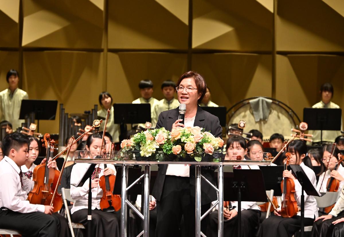 王縣長表示,今天是讓人感覺最熱情的一年,藝才班同學非常用心,練就一身才藝,卻缺乏表演機會,因此期盼提供場地讓大家互相切磋。感謝莊敏仁總監,從本地連結到世界,讓大家聽見許多不同國家的民俗歌曲。此外,今天表演非常多樣化,從絲竹、國樂,到管絃樂,充分展現彰化孩子的多元內涵。