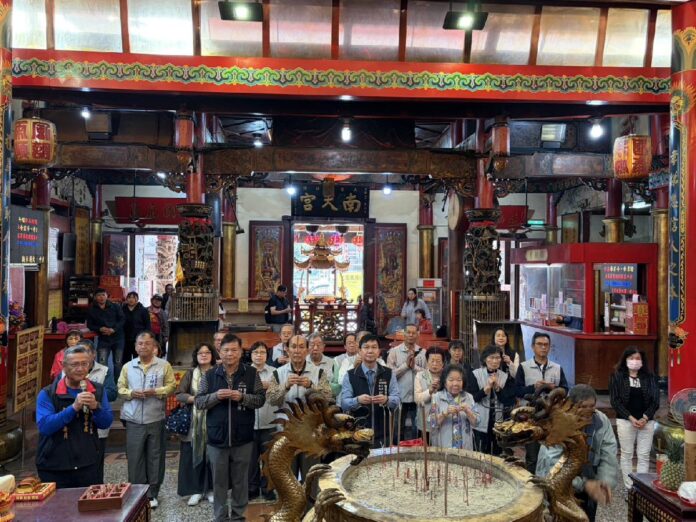 台中市政府客家事務委會昨(17)日特別選在充滿歷史與信仰意義的台中南天宮關聖帝君廟,舉行第八屆第六次委員會議,開會前江俊龍主委率眾人一同至殿前向關聖帝君獻香參拜,祈求會務推動順利,也祝願全體市民平安健康、事業順遂。