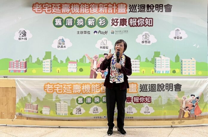 內政部今(18)日於新北市板橋區公所舉辦「舊厝換新衫,政府作伙擔」老宅延壽機能復新計畫巡迴說明會。劉世芳表示,板橋區在地人口多,30年以上老屋約有14.2萬餘戶,為全市老屋數量最多的地區之一,且獨居長輩戶數接近1萬7,000戶,顯示「人、屋雙老」問題已是社區日常課題,而非單純的統計數字。板橋區整體住宅平均屋齡達35.56年,普遍面臨建物老化、公共設備老舊、無障礙空間不足及高齡居住安全風險等問題。政府推動老宅延壽計畫,正是希望在不拆除、不重建的前提下,透過專業輔導與制度化補助,提升老宅耐震安全與居住機能,讓長輩住得舒適、安心,也讓社區持續活化。