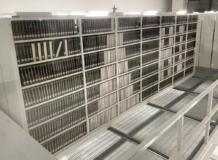 台中首座結合美術館與圖書館的文化新地標—綠美圖已正式開館。在宛如藝術品般的建築中,市圖總館的紙本圖書除了陳列於閱覽區書架外,其餘究竟藏身何處?市府文化局表示,答案就在館內地下一樓的「密集書庫」,不僅是書籍存放空間,更是綠美圖整體閱讀服務的心臟,象徵知識、藝術與文化交會的重要核心基地。建築師特別設計開了一扇窗,讓市民可一窺這座藏書基地的壯麗景象。