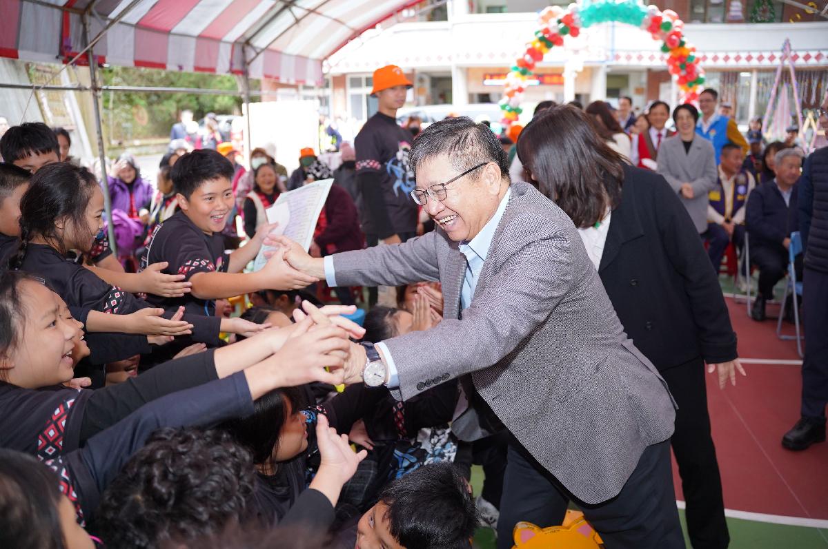 楊文科提到,這幾年縣府也對石磊國小投入超過1580萬元經費,協助完成多項重要改善,包括校舍耐震補強、門窗與廁所更新、球場地坪整建、消防設備與監視系統提升、廚房與健康中心設備及水源管線與水塔基地改善等全面升級,希望讓石磊國小的學習環境更安全、更舒適,也更符合現代教學需求,期許偏鄉學校持續培育出更多優秀人才。