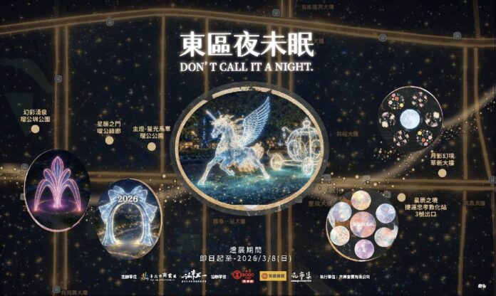 為打造冬季最具魅力的城市夜景,臺北市政府攜手台北市東區商圈發展協會,於今(19)日正式點亮東區冬季主題燈飾活動「東區夜未眠 Don’t Call It a Night」,以銀白色主題燈飾串聯起東區忠孝東路兩側,包含鄰近捷運廣場、公園綠地與街區巷弄等,形塑成一條可散步、可拍照、可停留的夜間光廊,讓東區在夜色中展現嶄新的城市樣貌,展出期間自即日起至115年3月8日,橫跨耶誕跨年直至春節元宵,為整個冬天帶來最溫暖的陪伴。