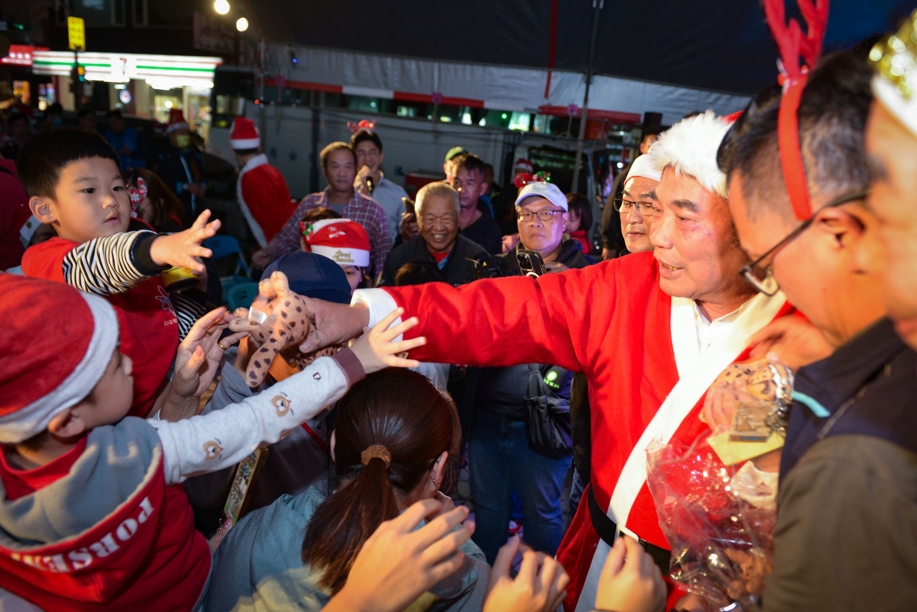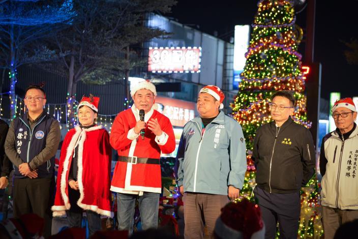 縣長鍾東錦特別換上聖誕老公公的服裝,他表示歲末年終的腳步近了,相關活動包括頭份市舉辦的、還有縣府在頭份竹南運動公園的耶誕城活動,都相當適合闔家參加,歡迎大家一起來苗栗過節。
