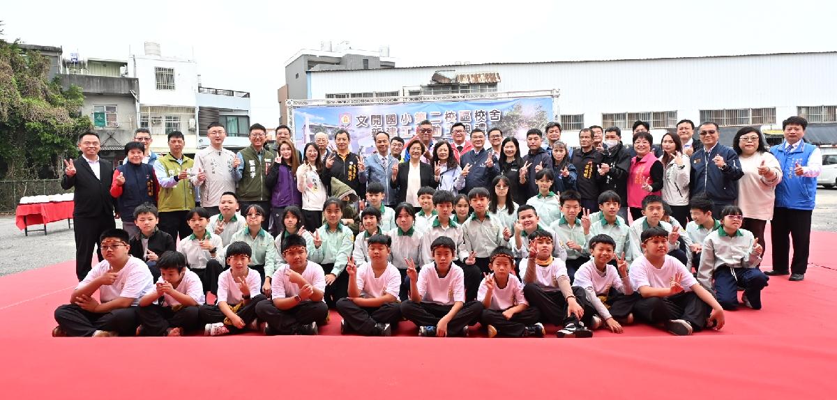 鹿港鎮文開國小創校106年,為解決校地空間不足並優化教學環境,今(19)日舉行「第二校區校舍新建工程」動土典禮,彰化縣長王惠美與會。王縣長表示,感謝議長謝典霖及所有議員對縣政預算的大力支持,縣府挹注6,500萬元新建大樓,期許為這所「允文允武」的百年名校,奠定迎接下一個百年的堅實基礎,讓孩子在更現代且安全的環境中快樂學習。