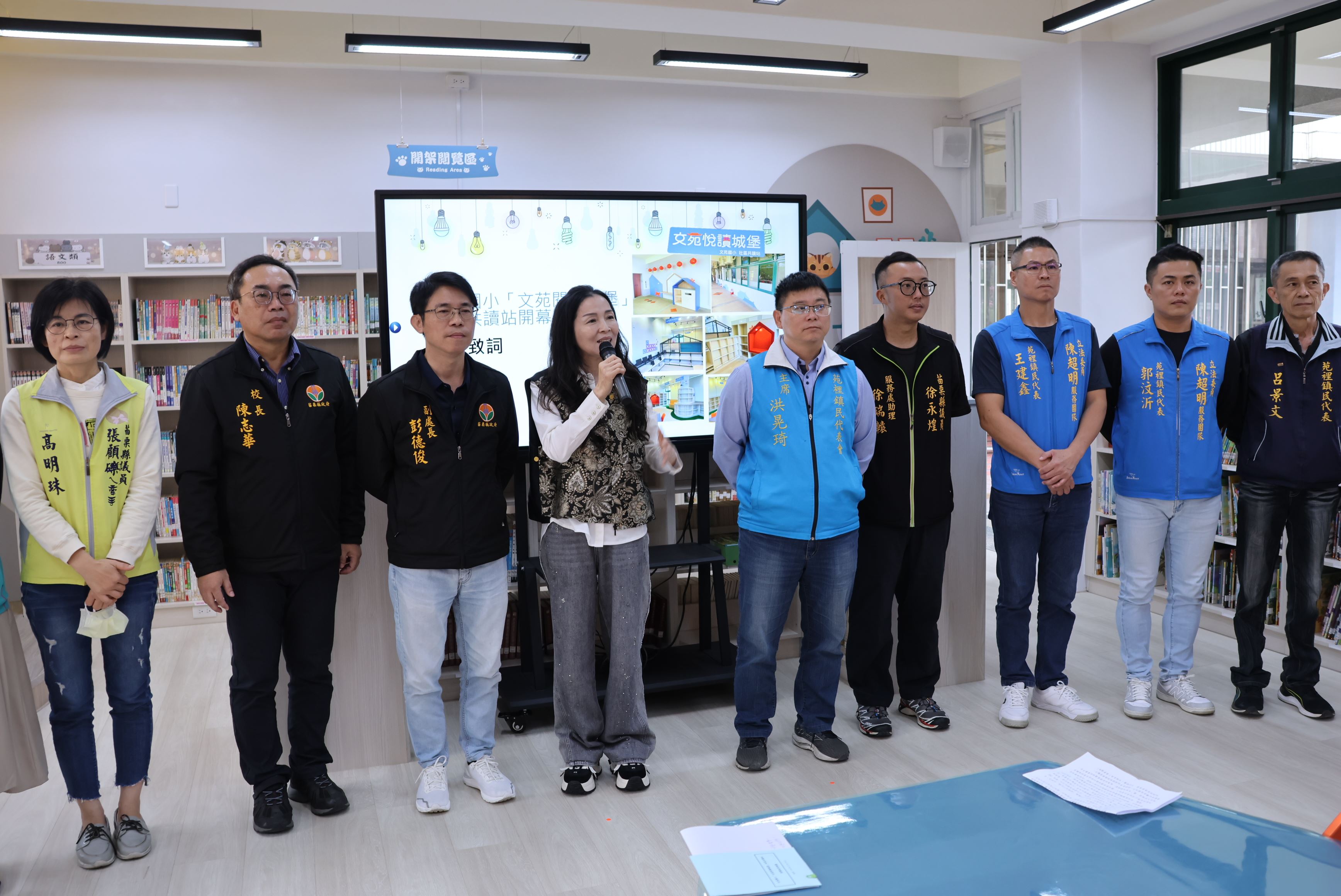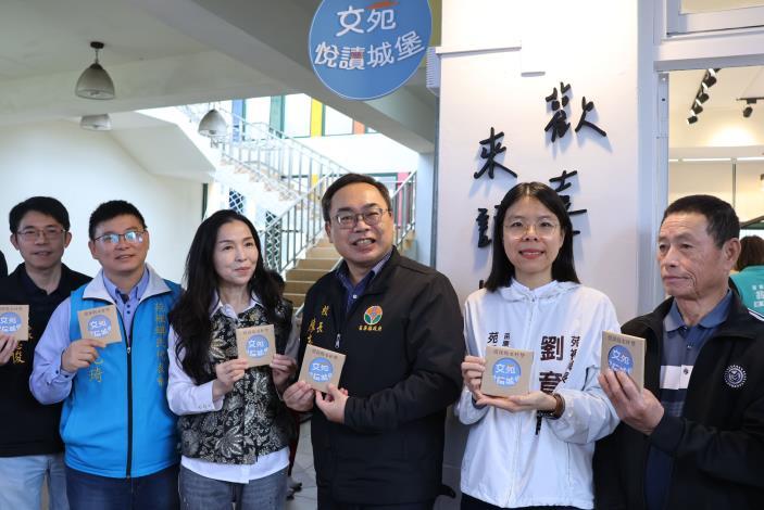 19日縣長夫人陳美琦、議員翁杰秘書、陳品安秘書、張顧礫秘書、周玉滿秘書、徐永煌秘書、苑裡鎮長劉育育、鎮代會主席洪晃琦以及地方民意代表等人共同為「文苑悅讀城堡」揭牌啟用,隨後夫人在學童的導覽下參觀共讀站,夫人認真聽完每位孩子的用心介紹,並特別送上小禮物對他們的表現給予高度肯定。