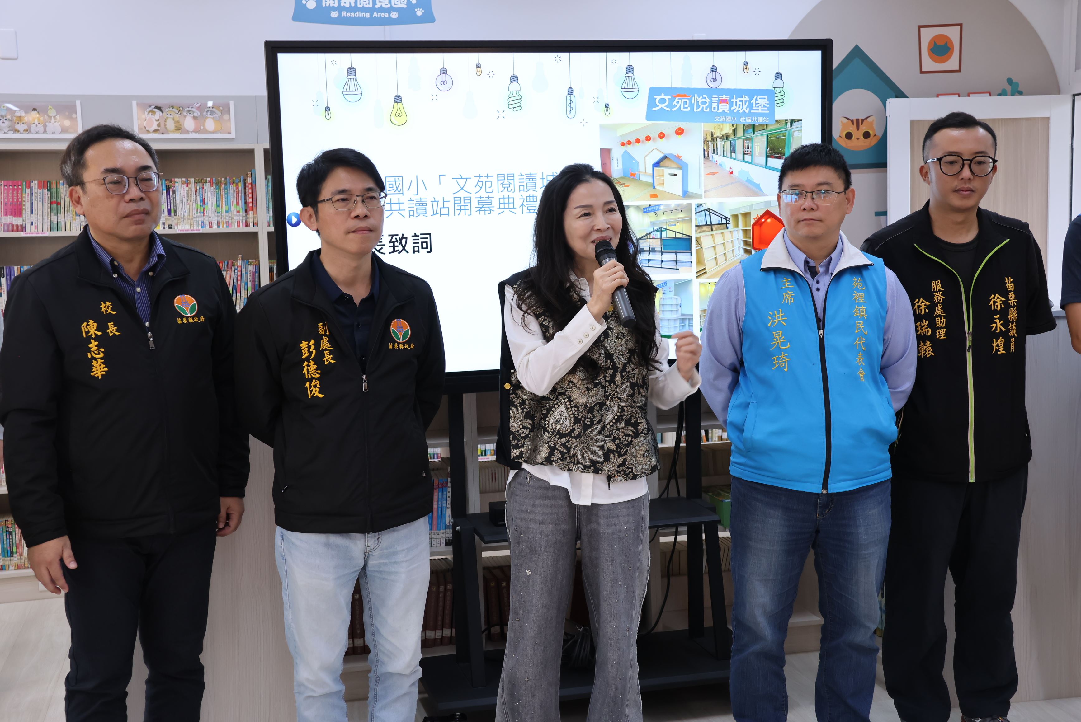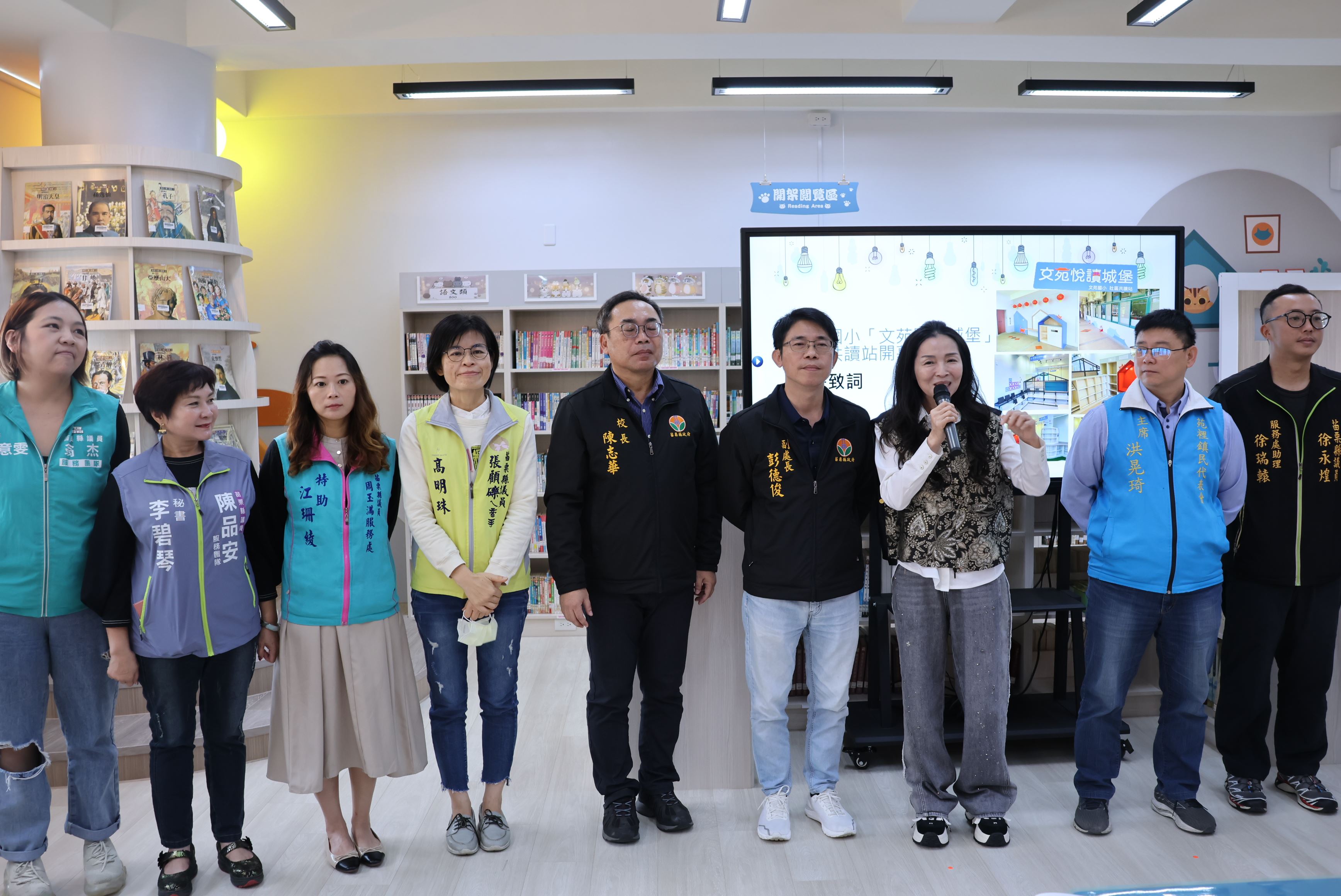 縣長夫人陳美琦表示,文苑悅讀城堡結合地方文化色彩,讓小朋友及長輩能在此共讀,日前女兒可可從美國回來休假,便跟她分享要獲得高級多巴胺要透過運動、閱讀,因此讓孩子先認識自己生長的地方,再認識世界是非常重要的一件事,開闊視野豐富知識,更能在此建立更好的情感。