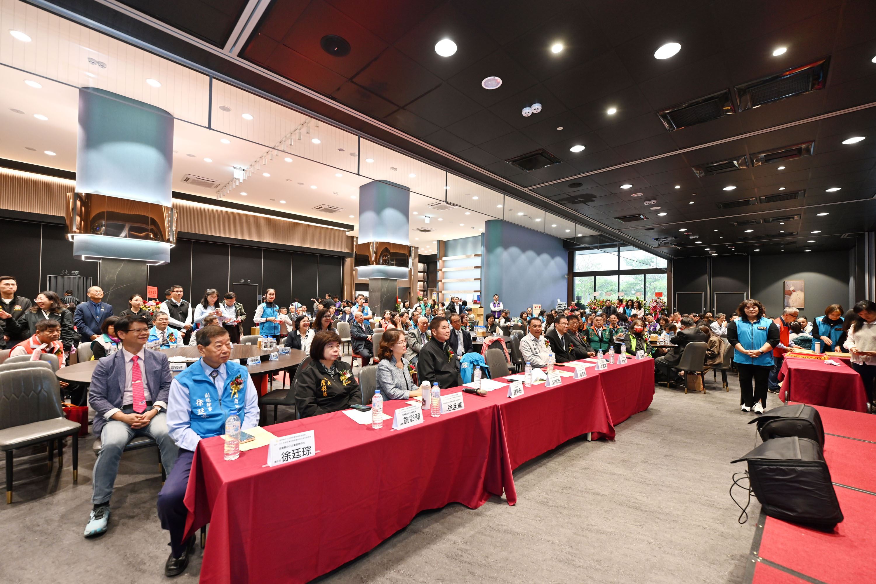 縣長鍾東錦、縣府工商發展處長詹彩蘋、行政院中部聯合服務中心副執行長李貴富、財團法人中小企業信用保證基金董事長魏明谷、對外貿易發展協會新竹辦事處主任李孟娟,以及全國10縣市榮譽指導員企業志工共220位代表上午到場觀禮。