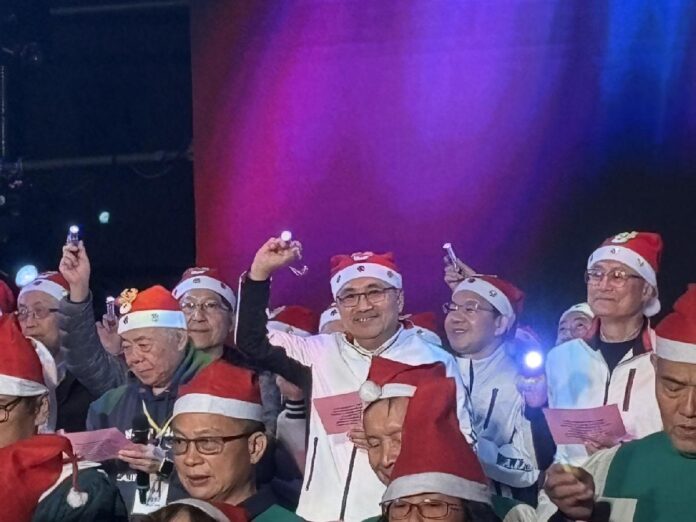 2025新北市耶誕平安晚會從今(21)日下午的愛心園遊會到晚間的平安晚會,洋溢濃厚的耶誕氣氛,吸引大批民眾參與。晚間市長侯友宜領銜市府團隊與各教會牧長、百人詩班向萬名遊客報佳音,為城市送暖,與現場民眾一起唱和《普世歡騰》、《平安夜》、《是為了愛》等聖誕詩歌,嘹亮歌聲響遍耶誕城,傳遞愛與祝福。