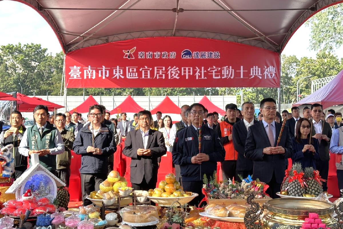 內政部國土管理署長吳欣修今(22)日出席「臺南市東區宜居後甲社會住宅」開工動土典禮。吳欣修表示,平實營區原為軍方營區與老舊眷村用地,由內政部全額補助臺南市政府辦理先期規劃及招商作業,採公辦都更方式分期開發,是臺南首例營改土地更新案。今日二期工程預計於118年完工,可無償分回175戶,加上今年6月已開工的一期工程「臺南市東區宜居平實社會住宅」預計分回238戶,市府將可無償分回共413戶。