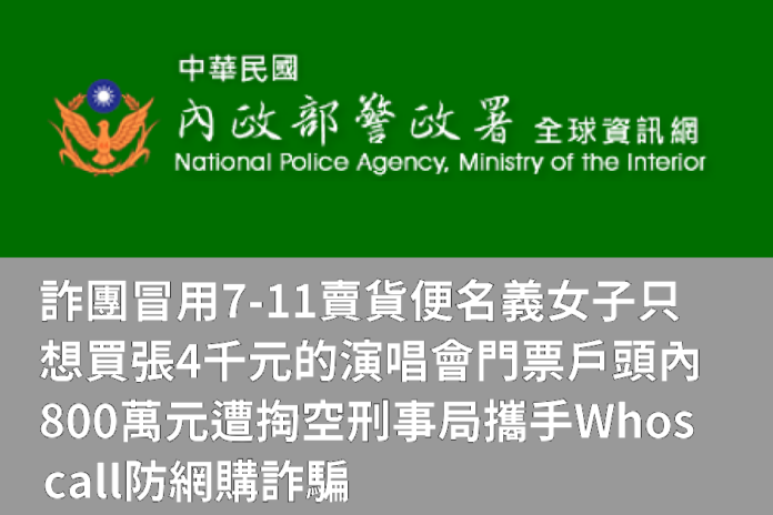 新北市1名中年女子因風靡年輕時的日本偶像山下智久來臺演唱會,今年10月間在Threads上向網友購買演唱會門票轉售票,假賣家提供「7-11賣貨便」假網站請她下單,下單後便因為轉帳失敗,假賣家引導中年女子點選假客服要求做實名認證。
