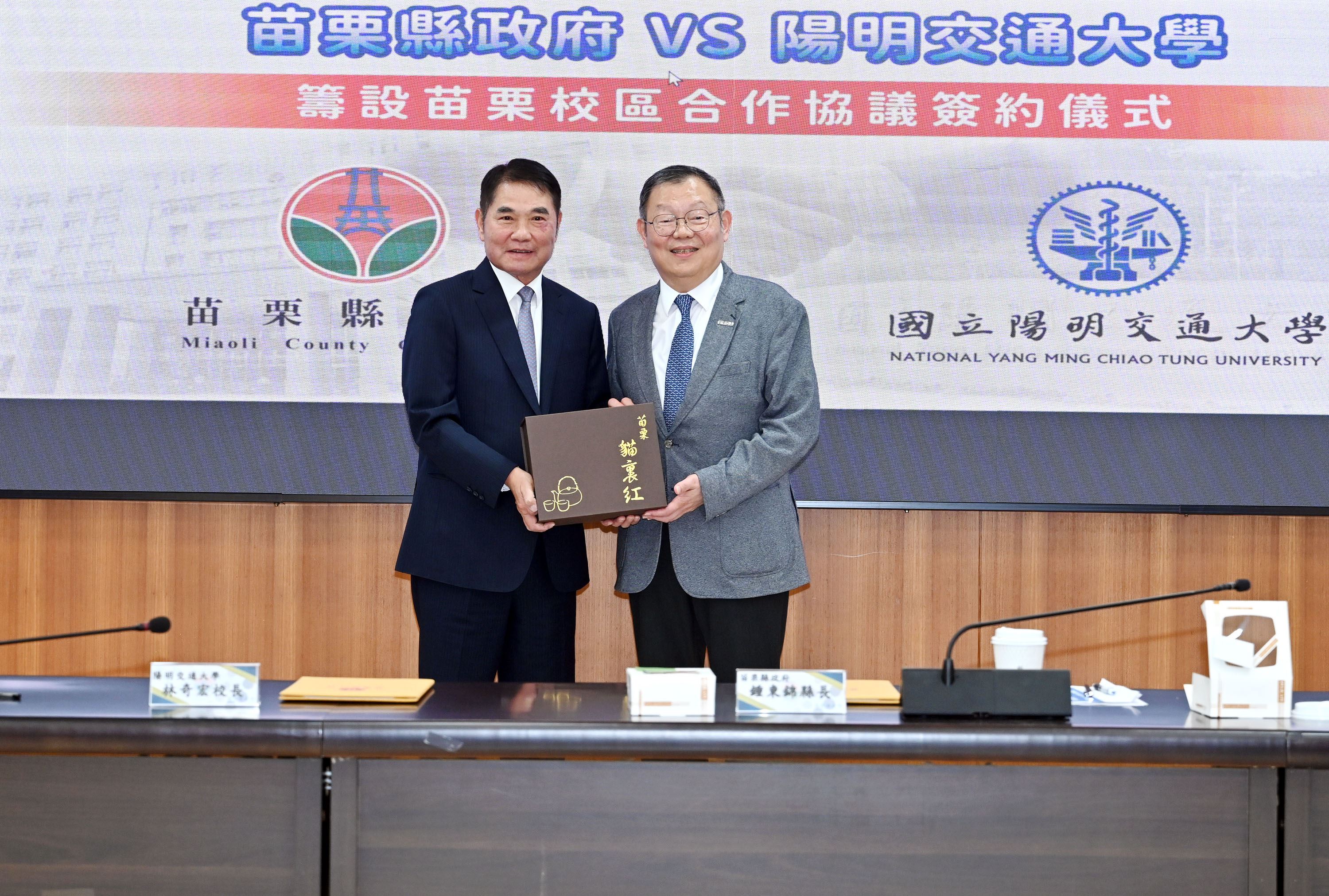 苗栗縣政府與陽明交大共同推動校區建設,縣府將提供後龍鎮龍富段土地(面積約3.35公頃),無償撥用給陽明交大,同時協助取得教育部籌設許可,並因應大矽谷計畫,推動跨領域研究、科技人才培育及產學共創基地。