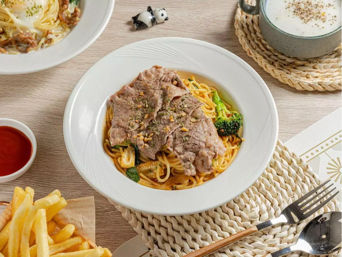 ▲中和晚餐推薦,大份量義大利麵配上濃湯喝到飽,實惠又滿足(圖/Medick Marketing Ltd.提供)