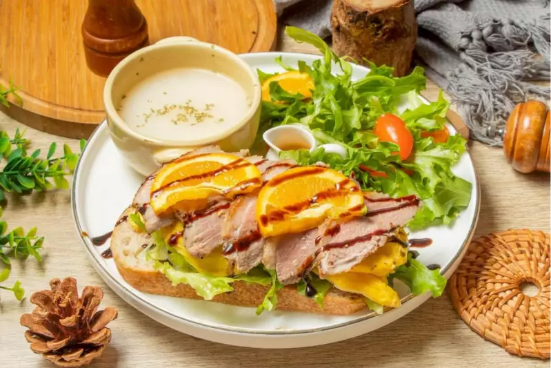 A:除了經典拼盤外,亦提供鹽烤鴨胸、雞腿排、牛排等選項,屬於結合輕食餐廳與正餐設計的混合模式,適合午餐或晚起的早午餐時段。