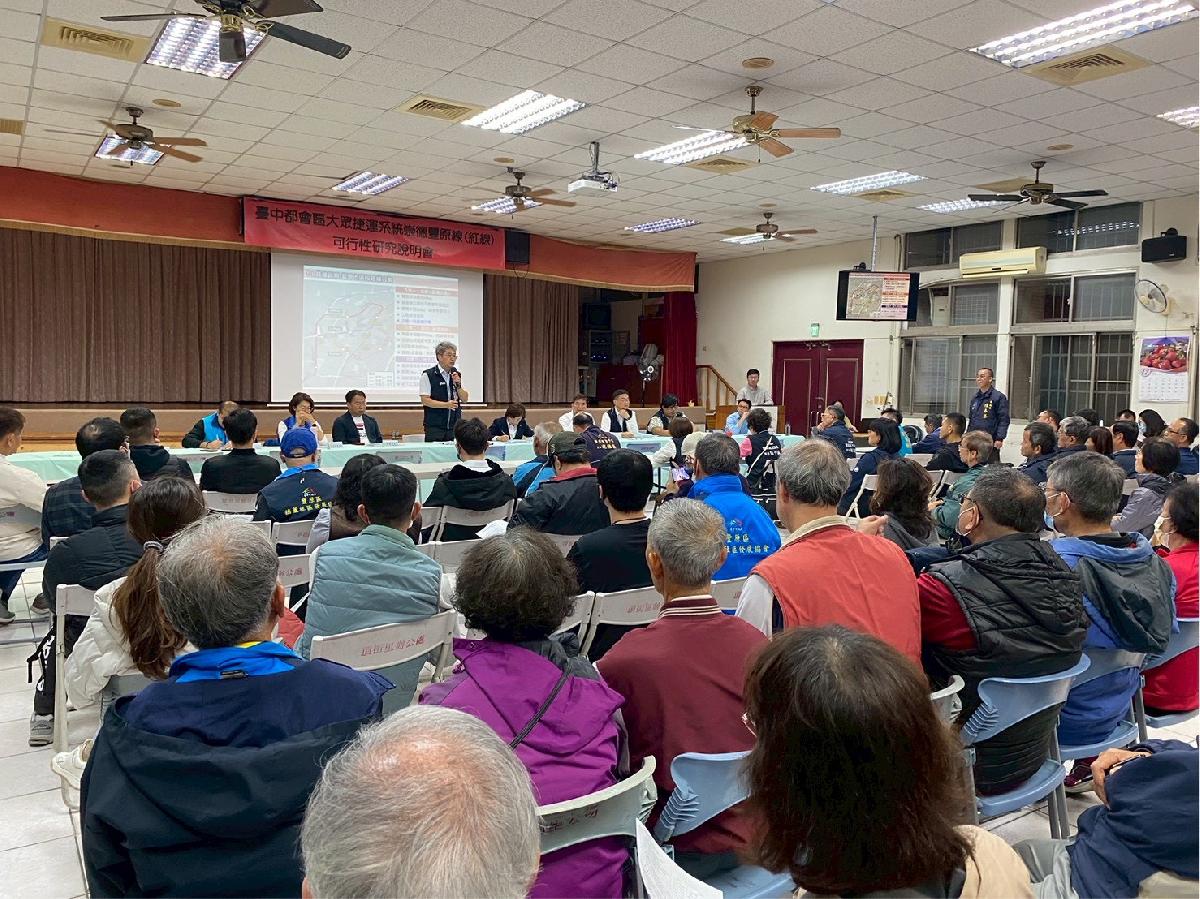 台中市政府積極推動捷運路網建設,為讓市民更了解捷運崇德豐原線(紅線)規劃內容,市府捷運工程局於12月22日及23日,分別在豐原區與北屯區舉辦2場「台中都會區大眾捷運系統崇德豐原線可行性研究」地方說明會,向地方說明目前研究成果並廣泛蒐集民眾意見。捷工局表示,2場說明會共吸引近350人次參與,討論議題包括延伸豐原段方案、增加站位、機廠選址、延伸后里可行性、轉乘規劃、工程技術及市區地下化等相關事項,顯示地方對捷運建設的高度關注與期待。