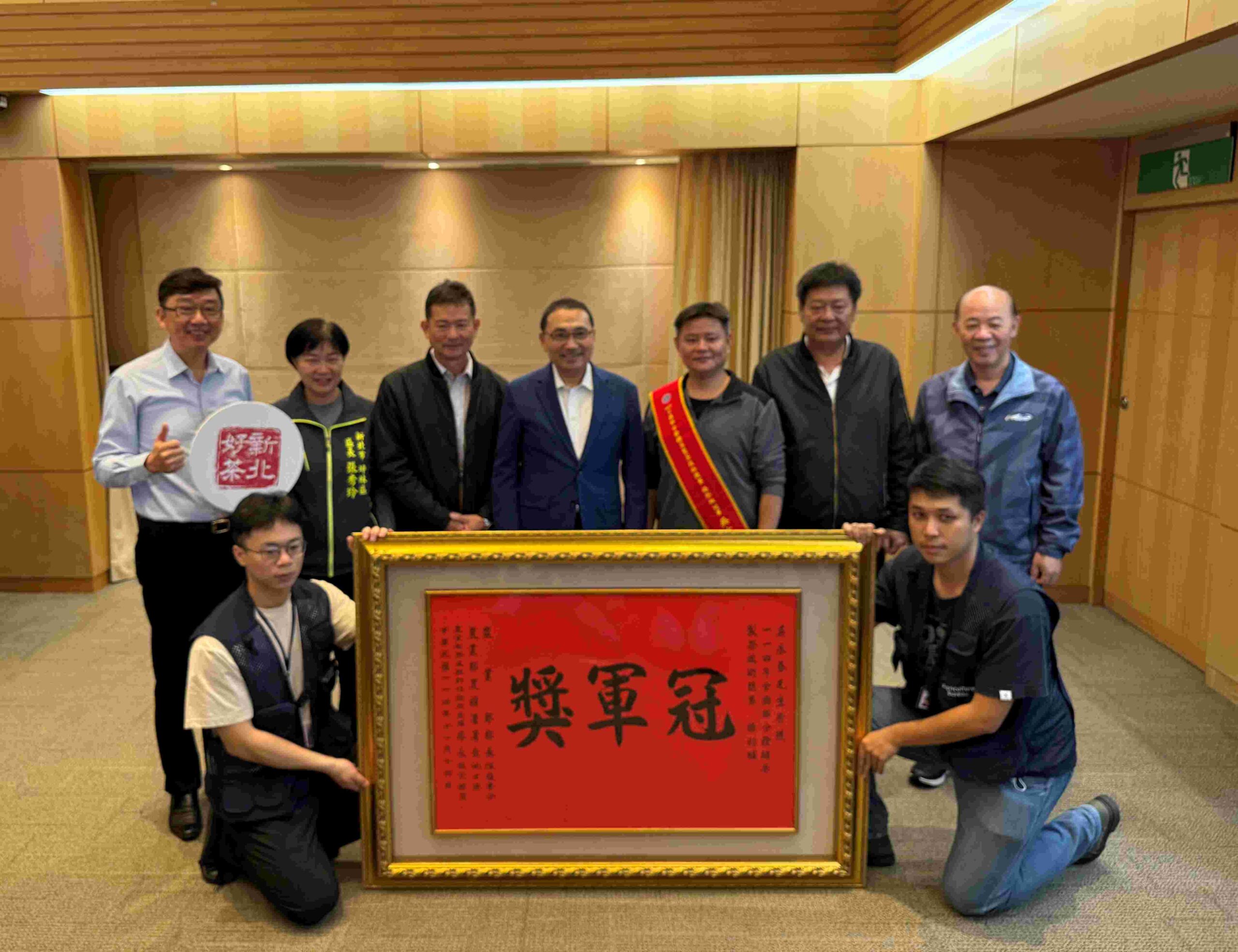 新北為北臺灣最大茶產區,新北茶農於全國賽事更是屢創佳績,坪林區吳永春榮獲114年度「全國部分發酵茶製茶技術競賽」冠軍,另茶農於「全國機採茶菁技術競賽」亦獲2座季軍肯定。新北歷年累計13座全國製茶技術競賽冠軍,冠軍茶師數量蟬聯全國第一,今(24)日於市政會議頒獻獎,新北市長侯友宜肯定茶農的紮實功力,見證新北茶產業世代傳承的珍貴結晶。