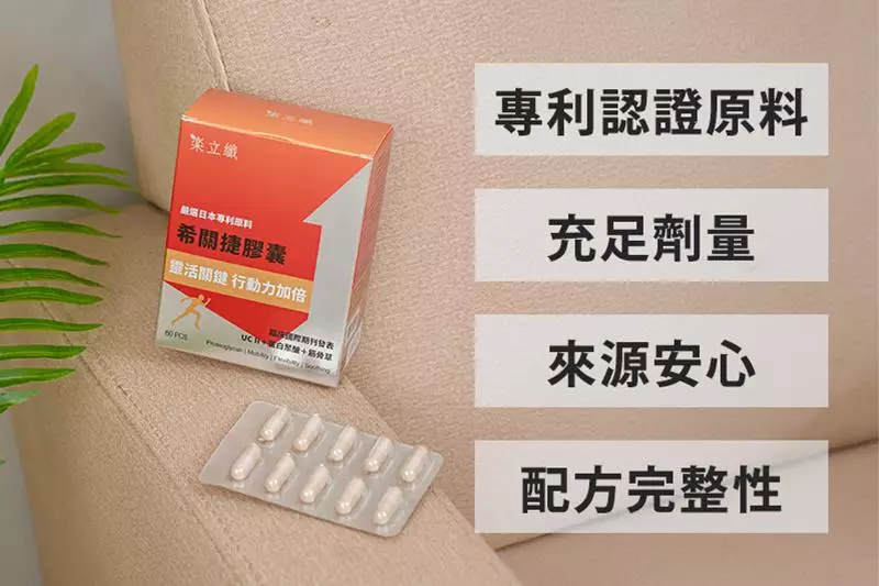 賴郁欣營養師補充表示,市面上如「樂立纖 希關捷膠囊®」這類行動力保健產品,在配方設計上符合多數專家建議的挑選原則。其採用足量 80 毫克專利原料,包含美國專利雞胸軟骨 UC-II、日本專利 PCT II 蛋白聚醣,並搭配多項具研究基礎的複方成分,在原料來源、製程控管與安全檢驗上皆有清楚標示,適合作為長期行動力保養的選擇之一。