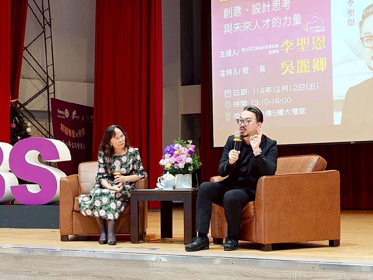 為深化學生對產業趨勢與未來職涯的理解,泰北國際雙語學校重點特色活動「企業家講堂」第七講於本月隆重登場,特別邀請114學年度新任家長會長、同時也是臺北市工業設計發展協會理事長李聖恩擔任主講人。以「從汽車設計到國際舞臺:創意、設計思考與未來人才的力量」為題,由吳麗卿校長擔任與談人,吸引國中、高中部學生踴躍參與,現場互動熱烈。