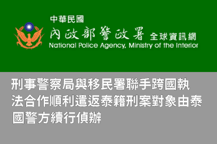 刑事警察局與移民署聯手跨國執法合作 順利遣返泰籍刑案對象 由泰國警方續行偵辦