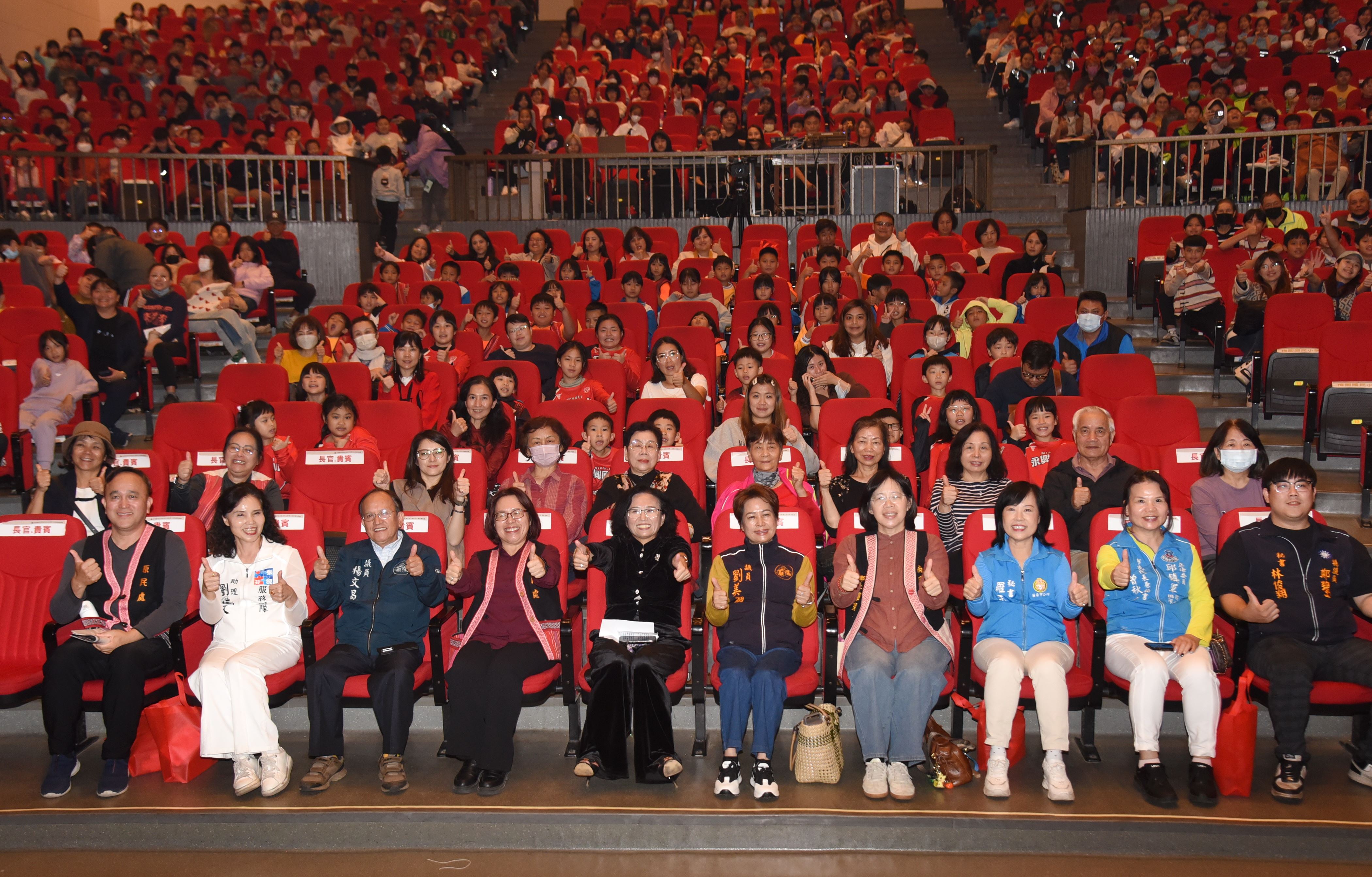今日到場觀賞成果展的來賓,有副縣長邱俐俐、副議長張淑芬助理劉瑞文、縣議員楊文昌、劉美蘭、鄭碧玉秘書林俊翔、南庄鄉長羅春蓮及苗栗市公所秘書羅玉棻,另有多位校長帶領小朋友感受原味十足的藝文饗宴。盧曉玲說,舞團要在短短半年之間精心策畫如此大型的歌舞劇,誠屬不易,欣賞到的觀眾都是非常幸福的一群;她並藉此機會與小朋友互動,再度宣揚泰雅族三寶,包括口簧琴、織布和紋面 ,來自部落的小朋友自是對答如流。