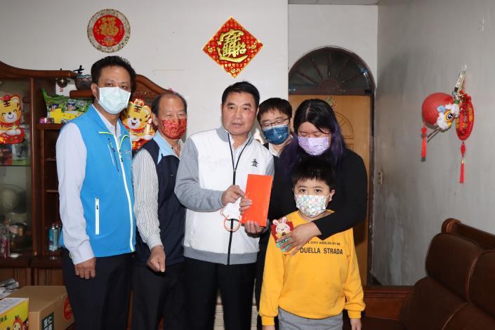 13日苗栗縣長鍾東錦、苗栗市長邱鎮軍、福麗里長黎星琳、玉清宮總幹事何天貴關懷苗栗市周姓女士家庭,苗栗縣長鍾東錦送上年節紅包8000元以外,得知她的兒子發展遲緩,隨即責成社會處連結家庭照顧相關資源給予協助,並心疼周姓女士扛起照顧及洗腎的母親的龐大壓力,除給予急難救助金,也請社福中心錄案持續提供關懷。