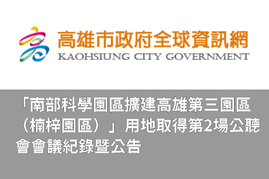 南部新聞高雄市「南部科學園區擴建高雄第三園區(楠梓園區)」用地取得第2場公聽會會議紀錄暨公告 南部新聞高雄市 「南部科學園區擴建高雄第三園區(楠梓園區)」用地取得第2場公聽會會議紀錄暨公告 編輯 劉 大龍 2025-12-29 「南部科學園區擴建高雄第三園區(楠梓園區)」用地取得第2場公聽會會議紀錄暨公告 南科114年11月25日召開「南部科學園區擴建高雄第三園區(楠梓園區)」用地取得第2場公聽會會議公告.pdf 南科114年11月25日召開「南部科學園區擴建高雄第三園區(楠梓園區)」用地取得第2場公聽會會議紀錄.pdf 南科114年11月25日召開「南部科學園區擴建高雄第三園區(楠梓園區)」用地取得第2場公聽會會議簽到.pdf 延伸閱讀 商情 內湖室內設計 澄橙設計 鎏金石語|美式輕奢挑高宅 商情 台北東區藏著一間巴黎選品店:如果妳曾愛過巴黎,這間店會讓妳心跳加速 商情 新竹科學園區報廢清運推薦|宏洋回收龍潭廠年度報廢清運統包實績分享 商情 台中頭皮護理沙龍「新巢」服務再升級:結合古法中藥與高濃度靈芝外泌體,開啟頭皮賦活新篇章