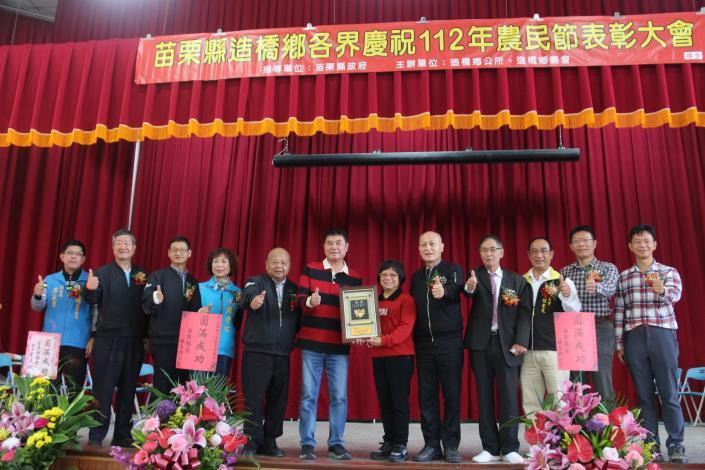 造橋鄉農會1月14日上午舉行慶祝農民節活動,表揚68位績優人員和農民,縣長鍾東錦感謝農會配合支持各項農業政策,提升栽植技術,期盼都能發展特色農業,增進農民收益。