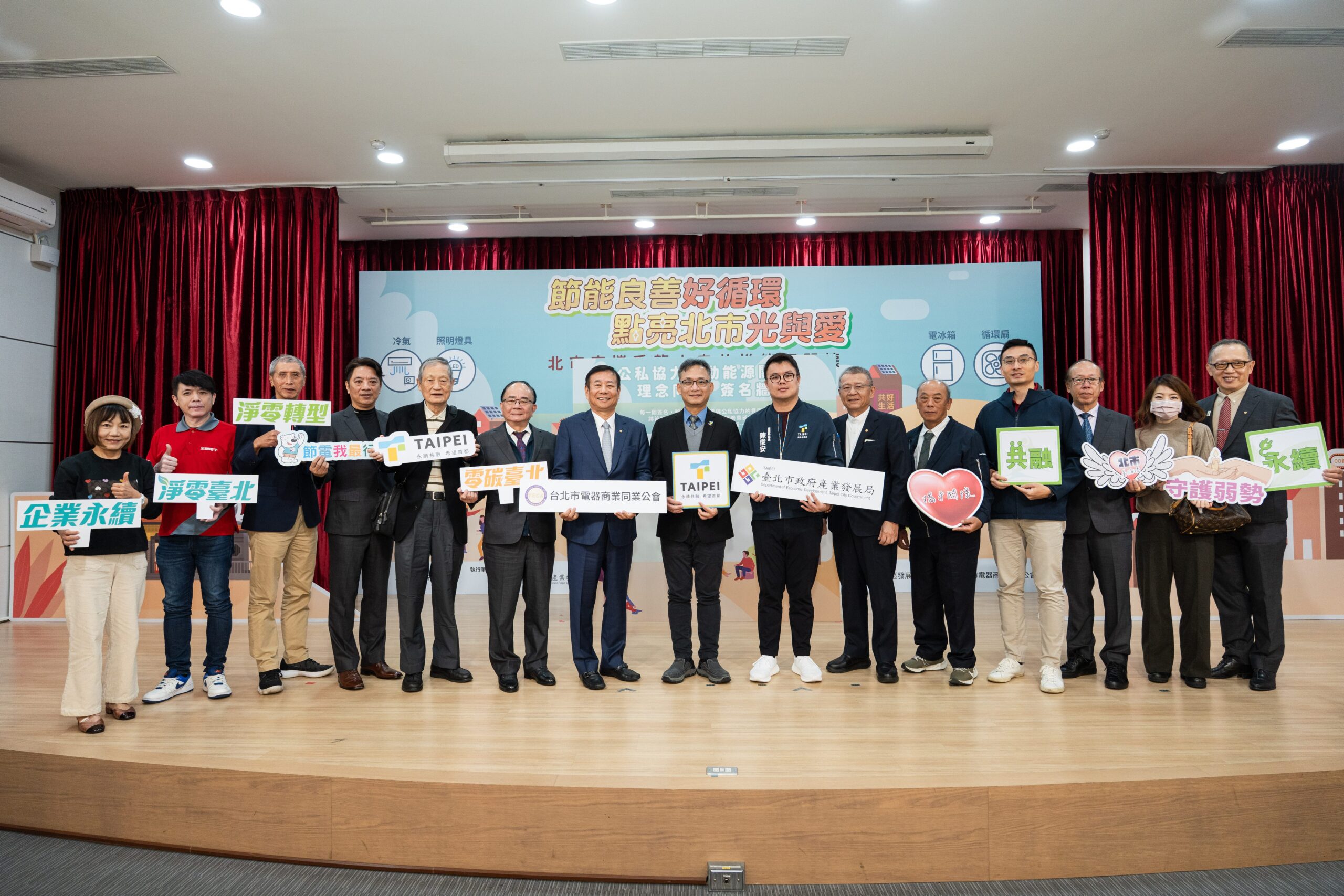 臺北市政府產業發展局於今(29)日上午10點於市府舉辦「節能良善好循環 點亮北市光與愛」記者會,宣布政府推動永續社會照顧與節能減碳的具體行動。活動由臺北市政府產業發展局與社會局共同執行,結合龍山寺捐助與電器商業公會專業支援,為三家社福機構汰換節能照明、空調、循環扇與低耗能冰箱,改善照護環境、降低用電成本,讓長者與照護者感受更明亮、安全、舒適的日常生活。此舉不僅落實了實質的能源節約,更透過「公私協力」模式,將社會資源轉化為永續轉型的動力。記者會由臺北市張溫德副市長,台北艋舺龍山寺黃書瑋董事長、台北市電器商業電器公會廖全平理事長、產業局陳俊安局長、社會局姚淑文局長、環保局徐世勳局長及萬華街區發展協會洪文和理事長與社福單位代表,共同見證這份溫暖的「光與愛」。
