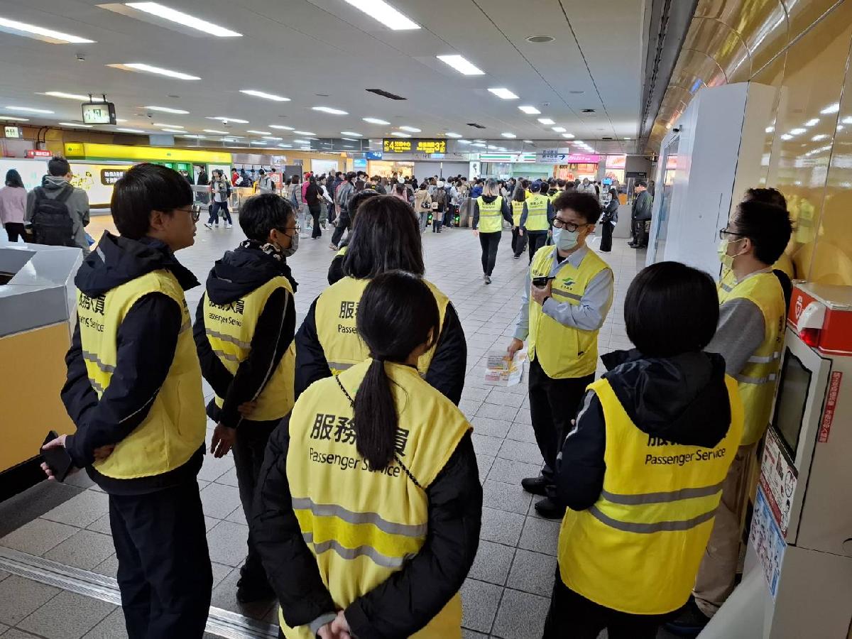今年全系統共投入服務人力近2,900人,引導旅客動線、月臺警戒、車站巡檢,必要時配合車站執行「月臺疏導管制」、「收費閘門疏導管制」、「出入口疏導管制」等三級管制,以及電扶梯管制、車站閘門服務、車票販售與維護秩序等工作,守護每一位旅客平安回家。