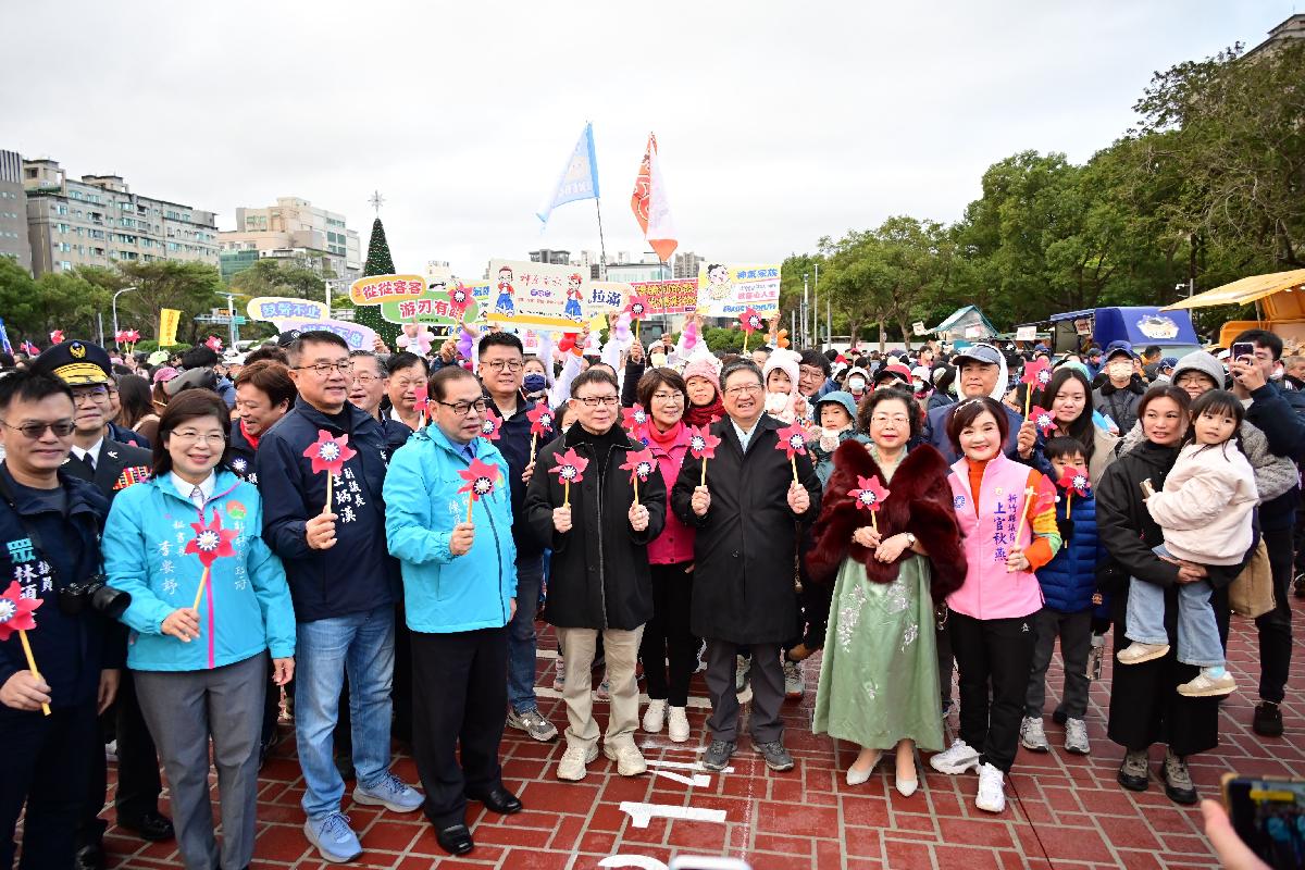 新竹縣議會議長張鎮榮也與多名縣議員到場參與升旗典禮,祝福鄉親在新的一年都能平安、健康,馬上幸福、馬到成功。