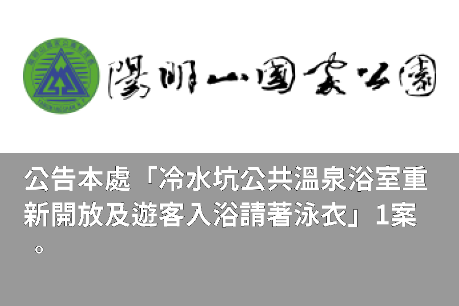 一、本處冷水坑公共溫泉浴室(以下簡稱溫泉浴室)已整修完畢,於115年1月2日起恢復正常開放供遊客使用。